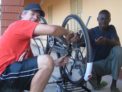 Jesse and Moses fixing the bikes– they are constantly breaking down and literally shed pieces along side the road ๐